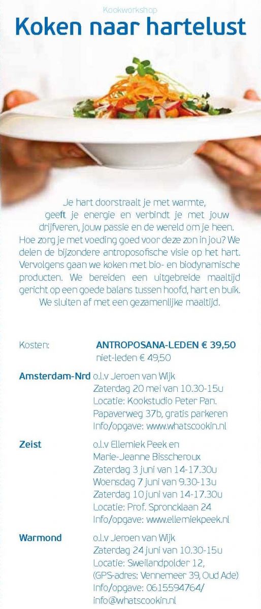Donderdag 13 april - Antroposana lezersaanbieding. Hoe zorg je met voeding goed voor je hart? Kom naar de kookworkshop!
