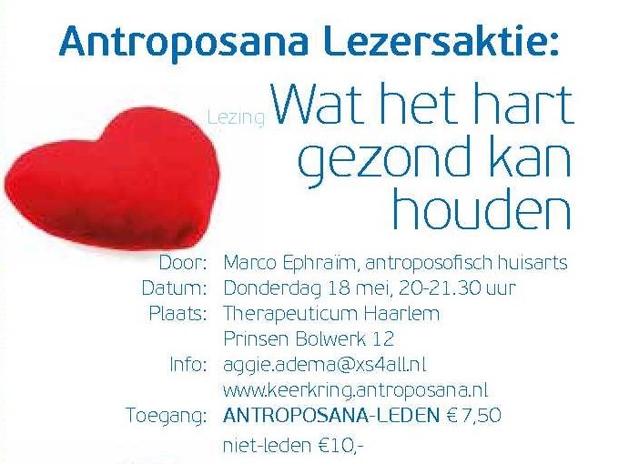 Donderdag 13 april - Antroposana lezersaktie: een lezing over het hart op 18 mei 2017.