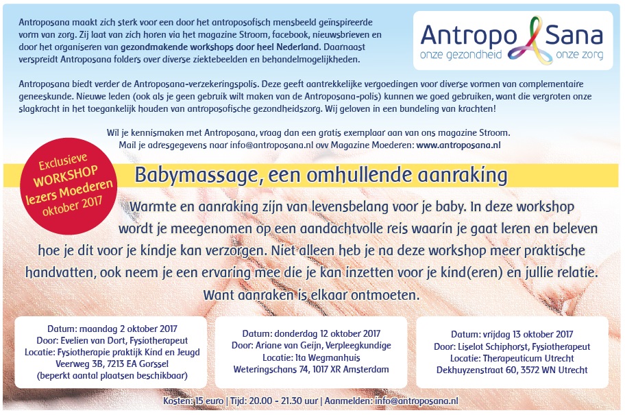 Donderdag 20 juli - In samenwerking met het blad Moederen, organiseert Antroposana een workshop voor lezers van Moederen!